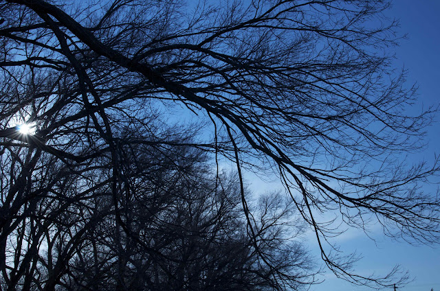 Hazy morning sunlight greets Cooper and me as the winter storms continue to rage to the east and south. Gray mists on the northern horizon seethe with reminders of the White Owl Woman’s passing. They ooze frigid temperatures and inspire winds to tease color into my cheeks. My beard provides a measure of comfort. We look for a brief respite from the biting cold. As we near a stand of Siberian Elm, a boisterous parliament of crows flutters playfully among the bare tree tops. Their raspy cacophony encourages a new perspective--life goes on, stop dwelling on misery, and have fun.